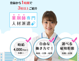 - ママ薬剤師向けの時短求人などが豊富